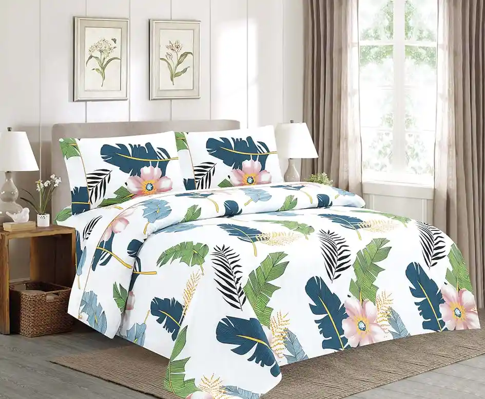 Juego de sábanas Estampadas cama doble Excelente calidad con renovados diseños para que le des ese toque personal a tu hogar. Características: -Para uso en cama doble -Medidas 1.40x1.90x30 Cm Aprox, 2 fundas 54x76 Cm -Elaboradas en microfibra 100% poliéster -Textura suave y placentera -No destiñen -No motosean -Planchado permanente -Con embone decorativo que les da un toque de elegancia -Variados diseños