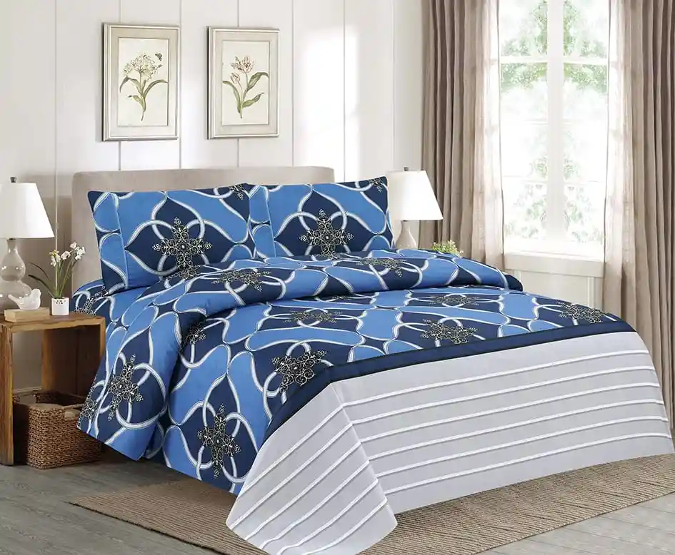 Juego de sábanas Estampadas cama doble Excelente calidad con renovados diseños para que le des ese toque personal a tu hogar. Características: -Para uso en cama doble -Medidas 1.40x1.90x30 Cm Aprox, 2 fundas 54x76 Cm -Elaboradas en microfibra 100% poliéster -Textura suave y placentera -No destiñen -No motosean -Planchado permanente -Con embone decorativo que les da un toque de elegancia -Variados diseños
