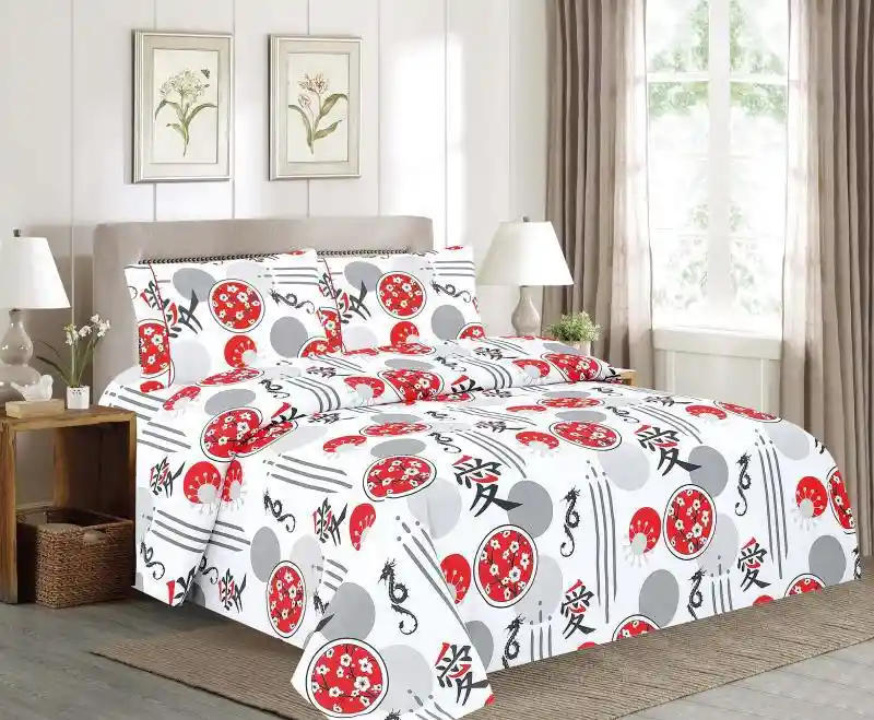 Juego de sábanas Estampadas cama doble Excelente calidad con renovados diseños para que le des ese toque personal a tu hogar. Características: -Para uso en cama doble -Medidas 1.40x1.90x30 Cm Aprox, 2 fundas 54x76 Cm -Elaboradas en microfibra 100% poliéster -Textura suave y placentera -No destiñen -No motosean -Planchado permanente -Con embone decorativo que les da un toque de elegancia -Variados diseños