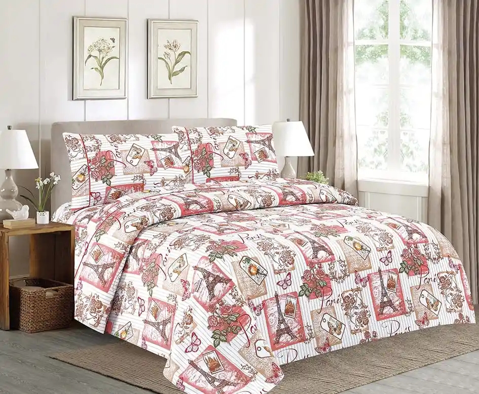 Juego de sábanas Estampadas cama doble Excelente calidad con renovados diseños para que le des ese toque personal a tu hogar. Características: -Para uso en cama doble -Medidas 1.40x1.90x30 Cm Aprox, 2 fundas 54x76 Cm -Elaboradas en microfibra 100% poliéster -Textura suave y placentera -No destiñen -No motosean -Planchado permanente -Con embone decorativo que les da un toque de elegancia -Variados diseños