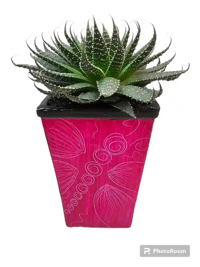 Popularmente llamada planta cebra o suculenta cebra, la Haworthia attenuata es una planta originaria de Sudáfrica, como todas las Haworthia. Es una suculenta no cactácea de pequeño tamaño, que rara vez supera los 15 cm de altura, lo que no le impide atraer las miradas hacia cualquier espacio en que la ubiquemos. Sus hojas aparecen formando una roseta sin tallos con hasta más de 30 hojas de color verde oscuro, con las líneas blancas y coriáceas que las caracterizan cruzándolas horizontalmente y en toda su longitud. Estas líneas ofrecen una textura particular y pueden palparse con cuidado sin provocarle a la planta ningún daño. Al momento de la compra le ofrecemos al cliente una ficha Técnica con las curiosidades y cuidados de la planta.