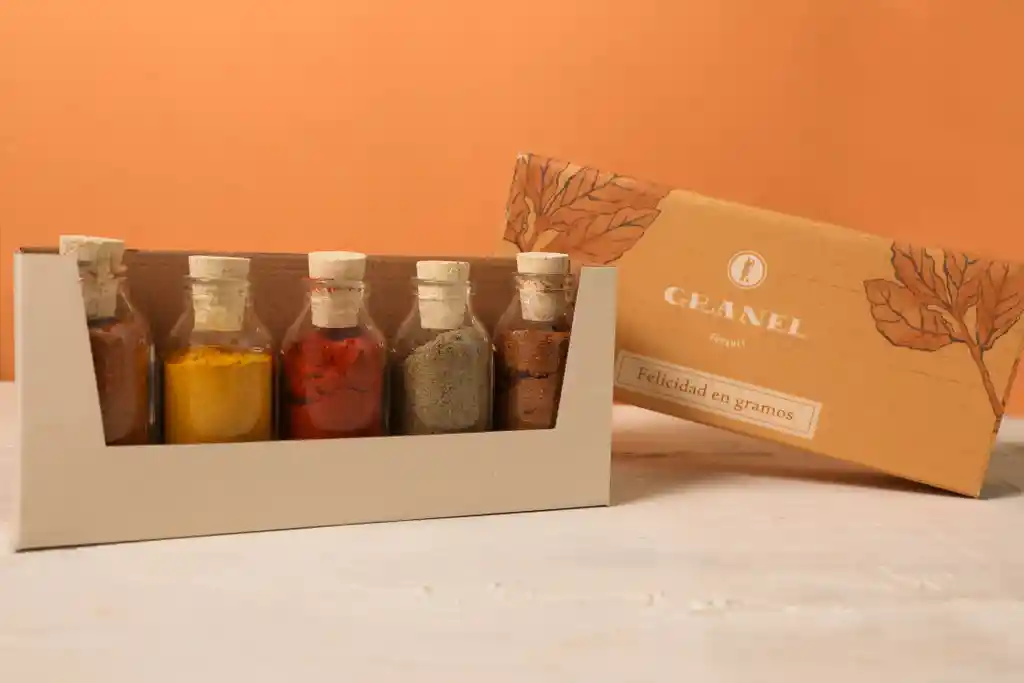 Las mejores especias provenientes de diferentes cocinas del mundo en una misma caja. Incluye paprika española, zaatar, curry madras, tandoori masala y cajún.