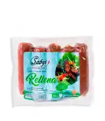 Deliciosa rellena vegana, perfecta para acompañar los asados. Ingredientes: soya, cereal (trigo), leguminosa (arveja), especia (poleo), cereal (trigo), cebolla larga, fécula de maíz, saborizante imitación carne (idéntico al natural), saborizante imitación a chorizo (idéntico al natural), colorante (color caramelo), especia (ajo), sal, colorante (eritrosina) y sorbato de potasio (conservante). Contiene: soya y trigo Producto refrigerado