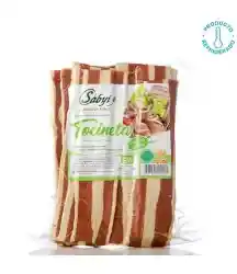 Su agradable presentación se complementa con la versatilidad para su preparación. En su estado a la plancha o parrilla o por aceite hacen de este novedoso producto un deleite en el plato. Es un agradable complemento en los huevos de soya revueltos, en las ensaladas, en la hamburguesa y en los platos que su genialidad considere. Ingredientes: soya, cereal (trigo), leguminosas (arveja), aceite vegetal, saborizante imitación a carne (idéntico al natural), fécula de maíz, especia (ajo), saborizante imitación a chorizo (idéntico al natural), colorante (eritrosina) y sorbato de potasio (conservante). Producto refrigerado
