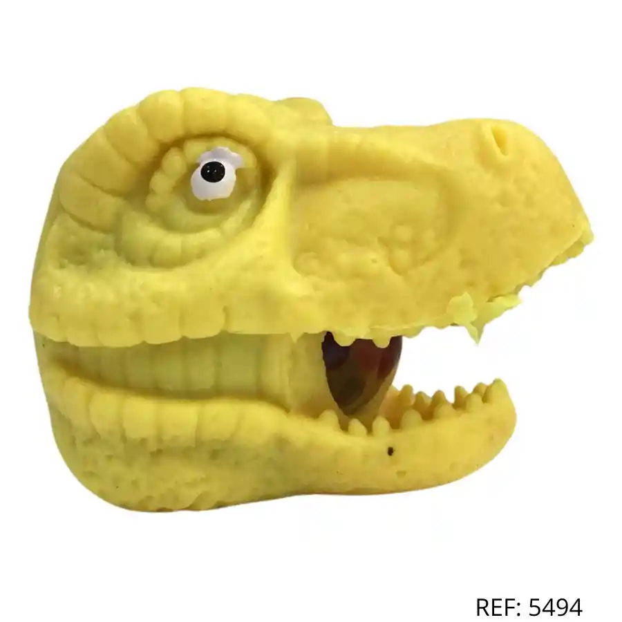 Cabeza de dinosaurio antiestrés amarilla con textura suave y burbujas de gel que sobresalen