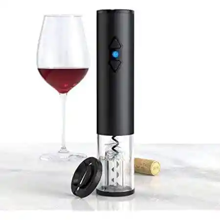 ¿QUÉ BENEFICIOS TIENE EL DESTAPADOR ELÉCTRICO? * Sacacorchos en segundos de tus botellas. * Tornillo seguro y duradero. * Recargable con baterías AA (No incluida) * Deja el sacacorchos convencional aparte y comienza a usar éste. * Producto preferido por bares y restaurantes. * Cubierta trasparente para ver el tapón. CARACTERÍSTICAS Se adapta a la mayoría de estándar de la botella de vino de tamaños Abre el vino en 6 - 8 segundos Compatible con batería recargable y4 * alcalinas AA batería (no incluida) Cubierta transparente sacacorchos para ver el tapón Tornillo de calidad alimentaria, seguro y duradero Botones de operación fáciles de empujar y tirar del corcho Carcasa de aleación de aluminio y cubierta de tornillo transparente ABS Menos de 75dB de bajo ruido de trabajo Tamaño: 23,5 cm CONTENIDO * 1 Saca corcho eléctrico. * 1 Cortador de papel de aluminio. * 1 Manual de usuario.