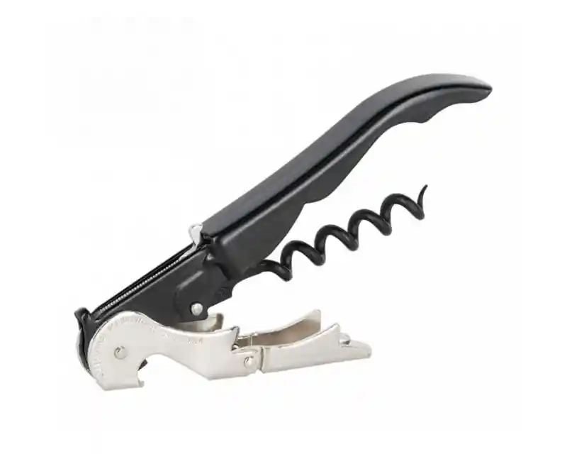 Sacacorchos profesional de doble apoyo diseñado para una extracción precisa y sin esfuerzo. Fabricado en materiales resistentes, con espiral de alta calidad y sistema de dos tiempos que facilita abrir botellas de forma segura y elegante. Ideal para uso doméstico y profesional.