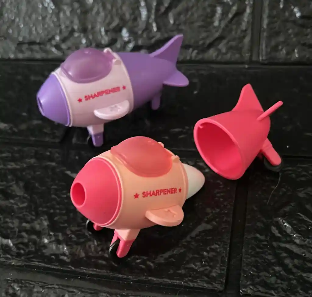 SACAPUNTA AVION NIÑA CON BORRADOR Y DESPOSITO PARA LAPIZ DELGADO COD.3131 (( TE PUEDE LLEGAR EN CUALQUIER COLOR DISPONIBLE ENTRE ROSADO Y MORADO ))