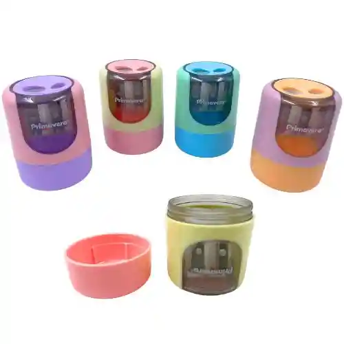 herramienta perfecta para estudiantes, artistas y amantes de la papelería que buscan un afilado preciso, práctico y con estilo. Su diseño cilíndrico en tonos pastel lo convierte en un accesorio moderno, mientras que su estructura resistente garantiza un rendimiento duradero. ¿Qué es? Es un sacapuntas de alta calidad con depósito integrado, fabricado con una lámina inoxidable que permite un afilado limpio y uniforme. Su diseño ergonómico y compacto facilita su uso y transporte, ideal para llevar en estuches, escritorios o mochilas. Ficha Técnica Marca: Primavera Modelo: Tokio Diseño: Cilíndrico en colores pastel Material de cuchilla: Lámina inoxidable Depósito: Amplio, ideal para evitar vaciados constantes Orificios: 2 orificios (para lápices convencionales y jumbo) Original: 100% producto auténtico Primavera