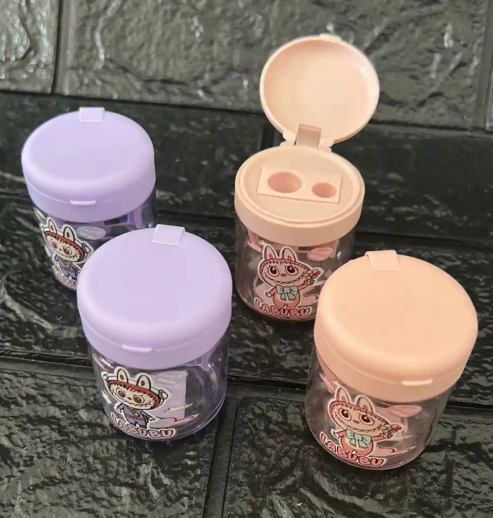 SACAPUNTA DEPOSITO DOBLE LABUBU NIÑA COD.3903 (( TE PUEDE LLEGAR CUALQUIER COLOR DISPONIBLE ENTRE MORADO Y ROSADO ))