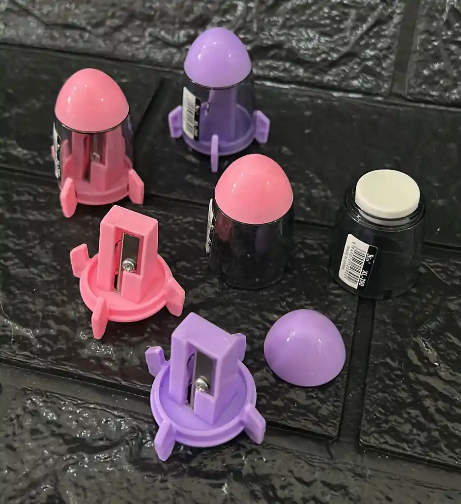 SACAPUNTA LAPIZ DELGADO COHETE NIÑA COD.3127-1 (( TE PUEDE LLEGAR CUALQUIER COLOR DISPONIBLE ENTRE ROSADO Y MORADO ))
