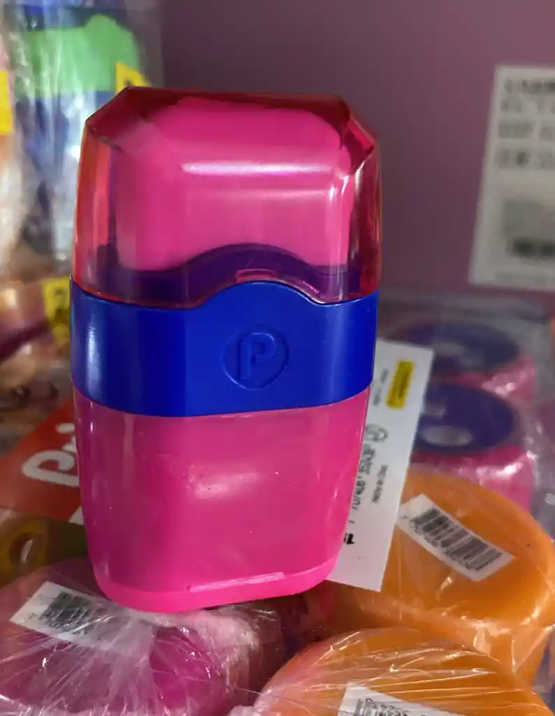 Sacapuntas con depósito de doble hueco, más borrador.