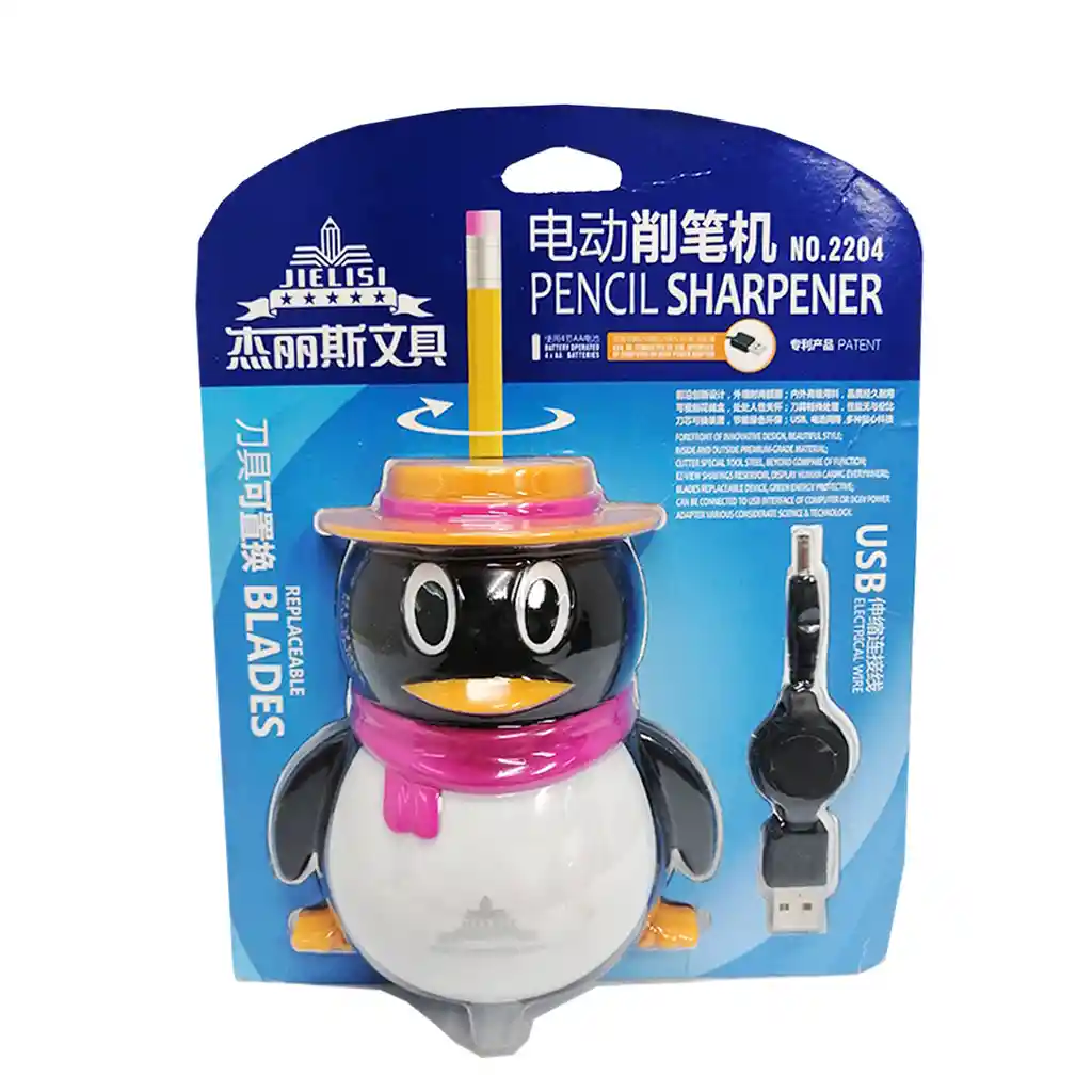 Sacapuntas eléctrico hermoso diseño de pingüino Este sacapuntas de alta tecnología sacapuntas rápida y automáticamente afilan los lápices a la perfección cada vez. Independientemente de si estás trabajando en casa o fuera de ella, este sacapuntas mantiene todos tus lápices afilados a tu gusto. Perfecto para uso en el hogar, la escuela o en la oficina Estilo hermoso, material de primera calidad en su interior y exterior, acero especial en herramienta de corte Depósito de virutas Cuchillas reemplazables Se puede conectar a usb interfaz de computadora o adaptador de corriente