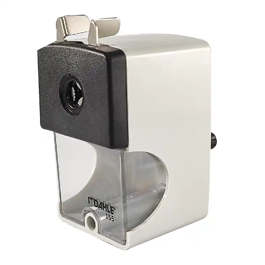 sacapuntas, tajalápiz DAHLE con manivela, deposito en acrílico y soporte estabilizador de rosca metálica. Somos Bocetos Papelería. Empresa Santandereana, ubicados en Bucaramanga, con más de 40 años en el mercado, orgullosos de ser distinguidos en el ámbito comercial, por cumplir a cabalidad nuestra mayor política: brindar siempre y en todo momento una experiencia de satisfacción total a las necesidades de nuestros clientes. Extremadamente resistente, diseñado para soportar volúmenes más altos, gran capacidad Recipiente de virutas extraíble, Ajustador de punta de lápiz y tope de corte automático. Abrazadera de escritorio incluida Para lápices de hasta 12 mm de diámetro. *sistema de corte automático, nunca más, afila. * cilindro de acero tiene 12 bordes esmerilados para afilar incluso. * ajuste del punto de punta afilada o roma. *cilindro se puede retirar para la limpieza. *Acepta lápices de gran tamaño. • Poca frecuencia de vaciado gracias al depósito de grandes dimensiones • Fresa de acero de alta calidad para resultados profesionales • Mordaza de tornillo para su fijación segura en el escritorio • Tope de corte automático para formar una punta óptima * Cuerpo de plástico de alta calidad. * Bandeja de virutas transparente. * Punta de lápiz ajustable. * Parada de corte automática.