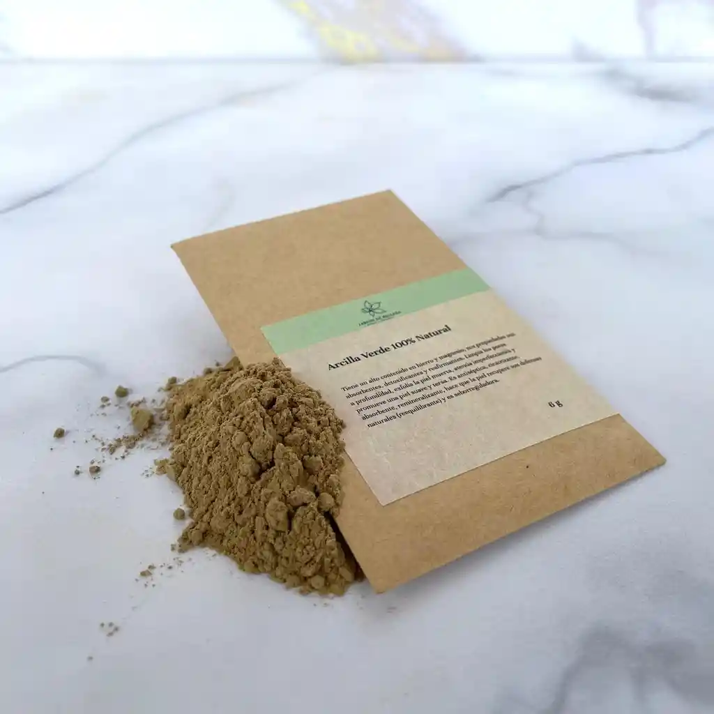 Tiene un alto contenido en hierro y magnesio, sus propiedades son absorbentes, detoxificantes y reafirmantes. Limpia los poros a profundidad, exfolia la piel muerta, atenúa imperfecciones y promueve una piel suave y tersa. Es antiséptica, cicatrizante, absorbente, remineralizante, hace que la piel recupere sus defensas naturales (reequilibrante) y es seborreguladora. 1 Sachet es una porción de 6g que rinde una aplicación facial.