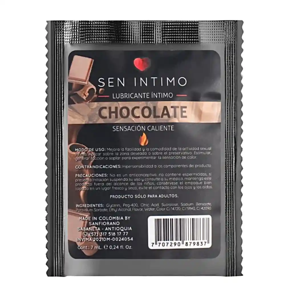 Contenido 7 ml Textura Ligera No mancha No deja residuos en la piel Sensación Caliente Sabor Chocolate Sopla para potenciar el calor USO: Apto para sexo oral y/o vaginal Aplicar sobre el área deseada, sobre el preservativo o juguete