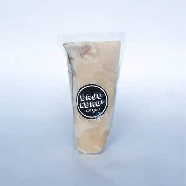 Presentación práctica y portable de un cocktail granizado ron Medellín con sabor a chocolate.