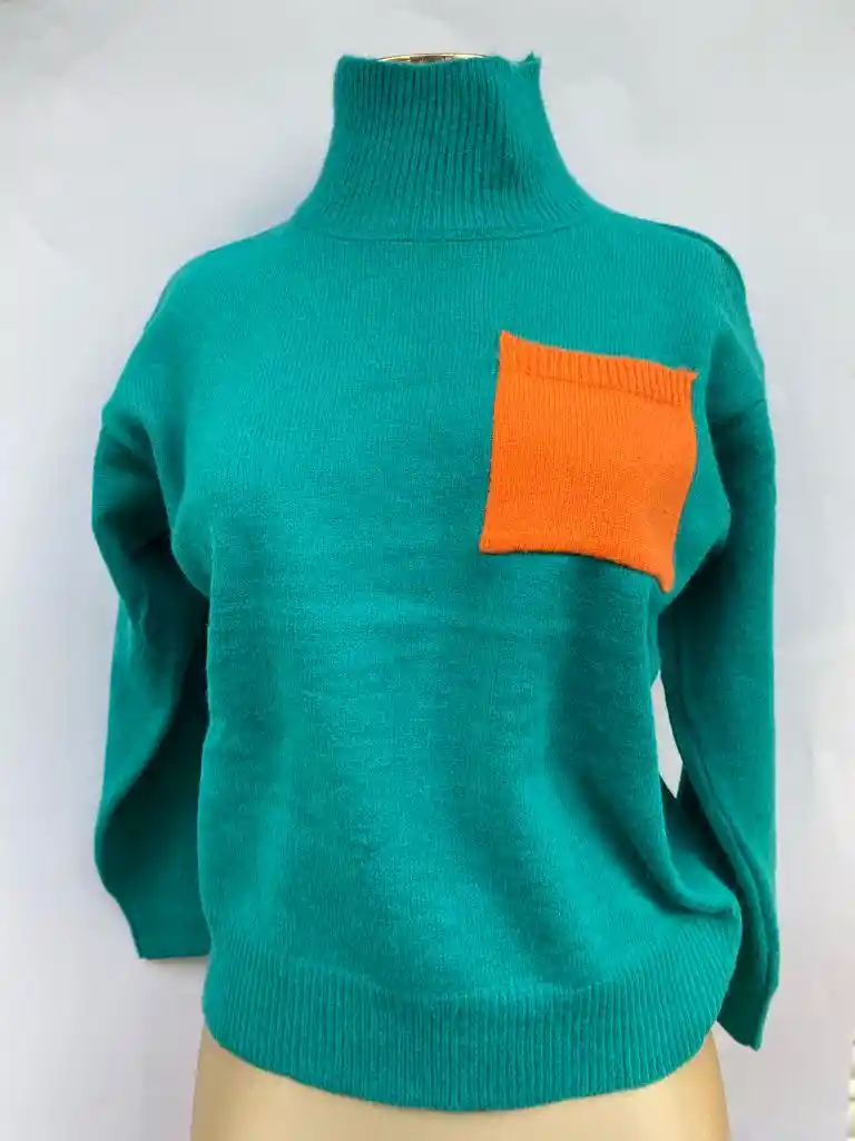 Saco cuello tortuga verde celeste talla única