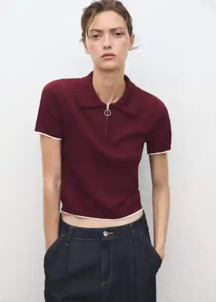 Cuello Polo Con Cierre de Cremallera Diseño Recto Manga Corta Ribetes en Contraste Tejido de Punto Fino - 17014144_77.
