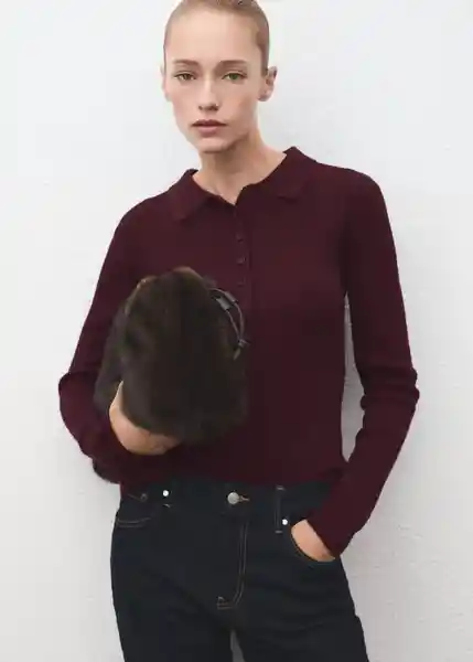 Cuello Polo Con Cierre de Botones Diseño Entallado Manga Larga Tejido de Punto de Canalé - 17007848_77.