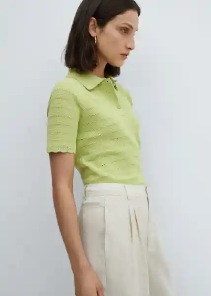 Cierre de Botones en el Cuello Cuello Polo Detalles Calados Diseño Recto Manga Corta Tejido de Punto Tejido Mezcla de Algodón - 67057133_14.