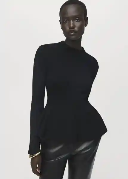 Corte Peplum Cuello Caja Disponible Plus Manga Larga Tejido de Punto de Canalé - 17007783_99.