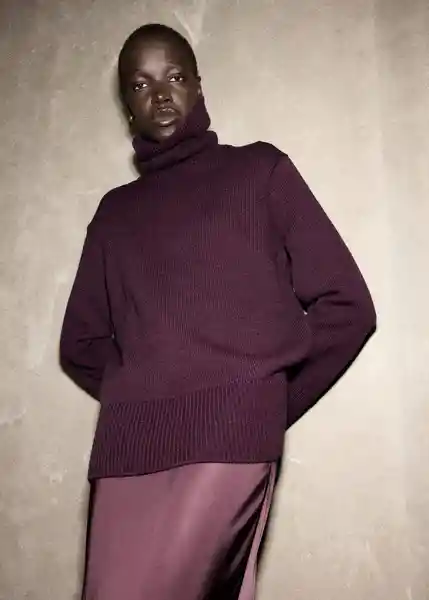 Aberturas Laterales Cuello Vuelto Diseño Recto Manga Larga Tejido de Punto Medio - 17007843_77.