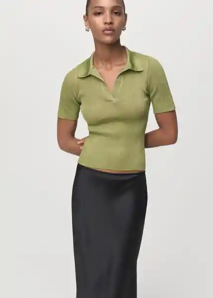 Cuello Polo Con Cierre de Botones Diseño Entallado Manga Corta Tejido de Lúrex Tejido de Punto Fino - 17014145_40.