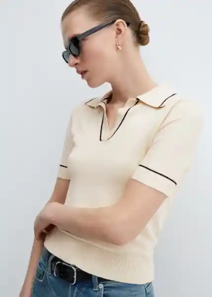 Cuello Polo Diseño Recto Looks de Oficina Manga Corta Ribetes en Contraste Sin Cierre Tejido de Punto Fino - 67025749_05.