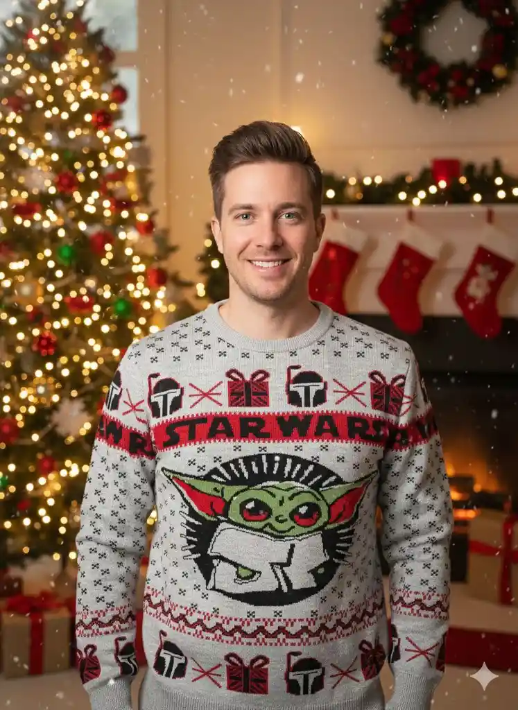 Saco Navideño Tejido Cómodo Caballero Gris – Diseño Baby Yoda Star Wars (Talla M) ¡Lleva la magia de la Navidad al estilo galáctico! ✨🛸 Este saco navideño tejido para caballero combina comodidad, estilo y el encanto único de Baby Yoda (Grogu). Su color gris versátil y su diseño inspirado en Star Wars lo convierten en la prenda ideal para lucir en reuniones, celebraciones o simplemente para disfrutar de la temporada con un toque divertido. ❄️🎄 Características: 🧵 Tejido suave y cómodo, ideal para usar durante todo el día. 👕 Talla M con ajuste perfecto para caballero. 🌌 Diseño Baby Yoda – Star Wars, original y lleno de personalidad. 🎁 Perfecto para celebraciones navideñas, fotos y regalos especiales. ❄️ Color gris elegante y combinable con cualquier outfit festivo.