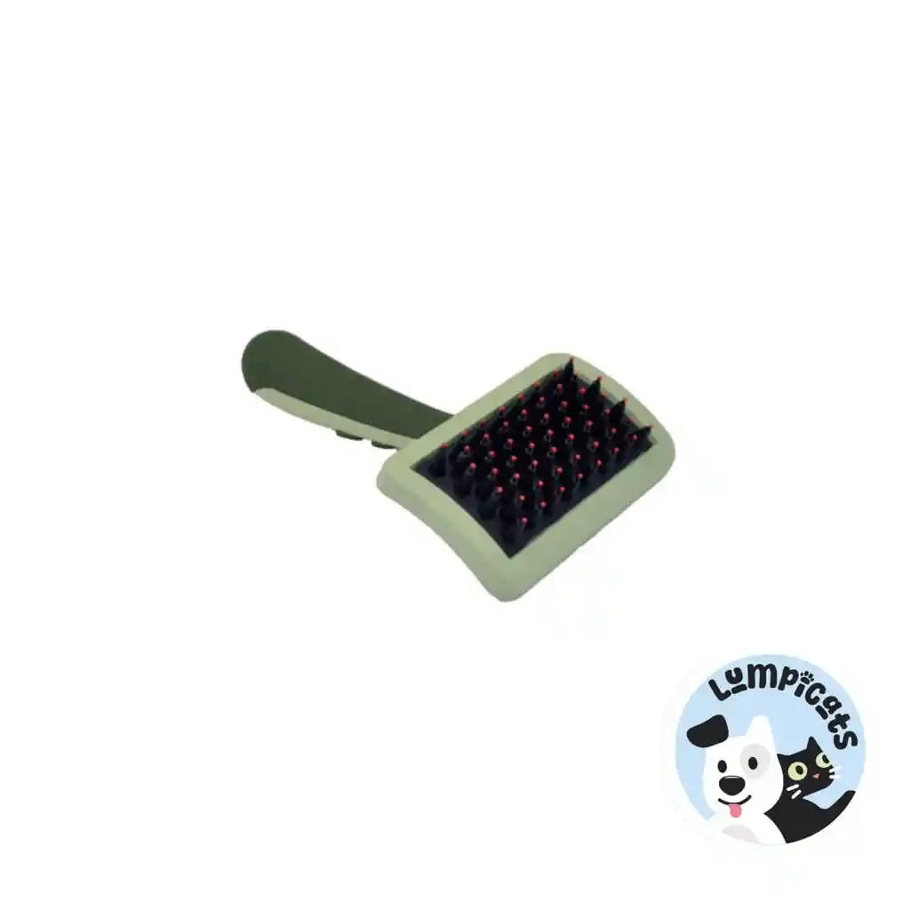 El Safari Perro Cepillo con Pines en Caucho es una herramienta de cuidado para mascotas, especialmente diseñada para el aseo de perros de diferentes razas y tamaños. Este cepillo cuenta con pines de acero inoxidable recubiertos con una capa de caucho suave, lo que proporciona una experiencia de cepillado cómoda tanto para el perro como para el dueño. Características: Pines de acero inoxidable: Ayudan a desenredar el pelaje, eliminando nudos, suciedad y pelos muertos sin dañar la piel del animal. Recubrimiento de caucho: Los pines están recubiertos con una capa de caucho suave que reduce la fricción, haciendo que el cepillado sea más agradable y menos irritante para la piel sensible del perro. Ergonomía: El mango ergonómico facilita el agarre y permite un uso cómodo durante el aseo, incluso durante sesiones prolongadas. Ideal para perros de pelo medio o largo: Es particularmente efectivo en razas de pelo largo o semi-largo, aunque también puede usarse en perros con pelajes más cortos.