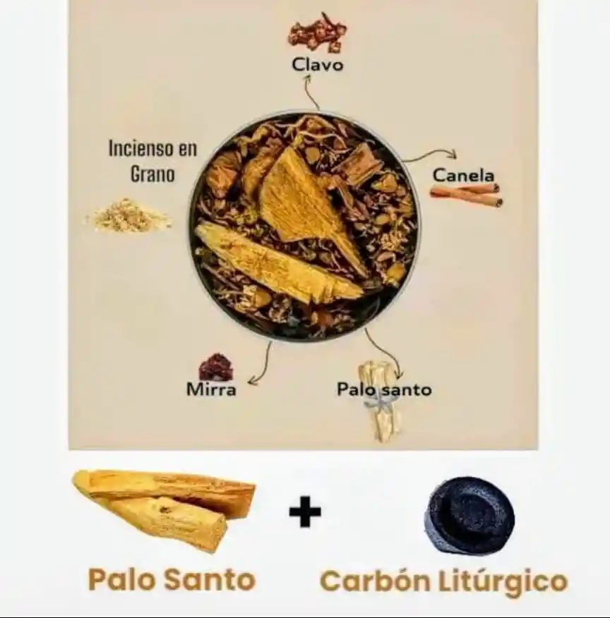 El Sahumerio DULCE es una mezcla de: •Mirra Dulce •Incienso en Grano •Palo Santo Molido •Clavo •Canela Además trae 2 Palitos enteros de Palo Santo y 1 Carbón Litúrgico (Especial para Sahumerio) Modo de uso: tome la cantidad necesaria de carbones para su uso. Ubíquelas en el incensario y tome una para encenderla, coloque fuego en uno de los lados de la pastilla por 1 min aprox. Una vez este encendida colóquela en el interior del incensario para colocar a punto los demás carboncillos. Coloque una porción de incienso deseado encima de los carboncillos, mueva en forma de péndulo el incensario y comience la ceremonia. Este Sahumerio es Ideal para armonizar los espacios, estimular los canales de prosperidad en el hogar y sitio de trabajo. El Sahumerio viene listo para utilizar. Advertencia: mantener fuera del alcance de los niños.