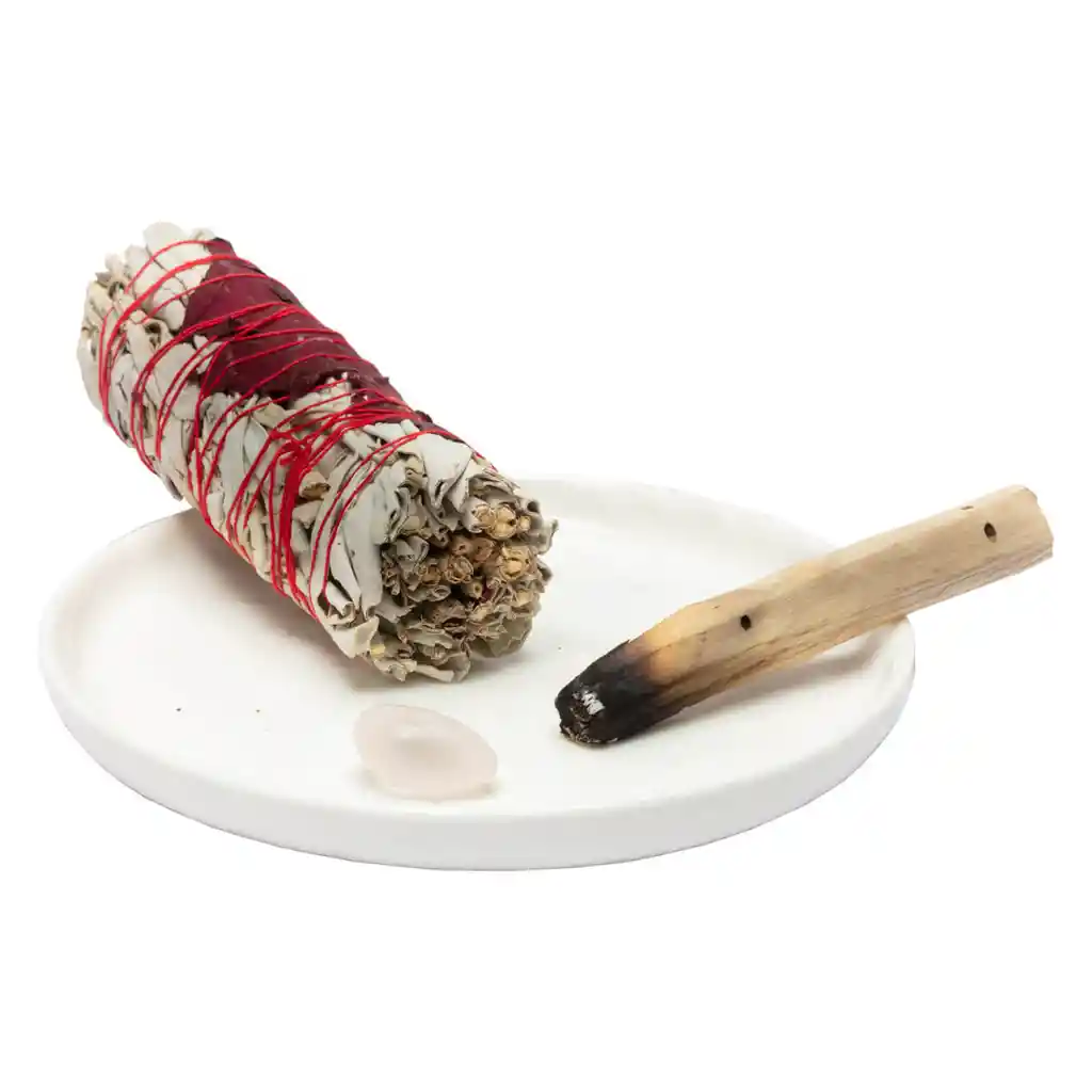 ¡Atrae las buenas energías! Haz una limpieza energética que te permitirá aumentar tu creatividad y desbloquear tu mente con nuestros SAHUMERIOS MÁGICOS que contienen salvia blanca californiana con rosas, palo santo y cuarzo rosa, deshazte con ellos de las energías negativas que fluyen dentro y alrededor de tu cuerpo y espacio, para lograr vibrar en una alta frecuencia energética. Bendice tu hogar quemando palo santo y salvia blanca californiana, mientras que a la vez logras reducir los sentimientos de estrés, ansiedad, dolor o depresión, al quemar estas hierbas se produce una emisión de iones negativos que te pueden ayudar a normalizar los niveles de serotonina, una hormona que mejora el estado de ánimo y aumenta la sensación de tranquilidad, calma y concentración mental. Con nuestros SAHUMERIOS MÁGICOS puedes entrar de una manera rápida y fácil en un estado meditativo, quemar estas hierbas mejora tu estado de ánimo y te ayuda a entrar en un estado de serenidad en menos de 5 minutos, siendo la manera perfecta de empezar o terminar el día, mientras que el cuarzo rosa te llena de amor incondicional y paz infinita extrayendo suavemente las energías negativas reemplazándolas por vibraciones positivas, además puedes llevarlo como amuleto en tu bolsillo el cual podrás cargar enterrándose en tierra o alguna maceta de tu hogar. ¡Lo que necesita el mundo! Contiene: ✨ Salvia blanca californiana con rosas ✨ Palo santo ✨ Cuarzo rosa
