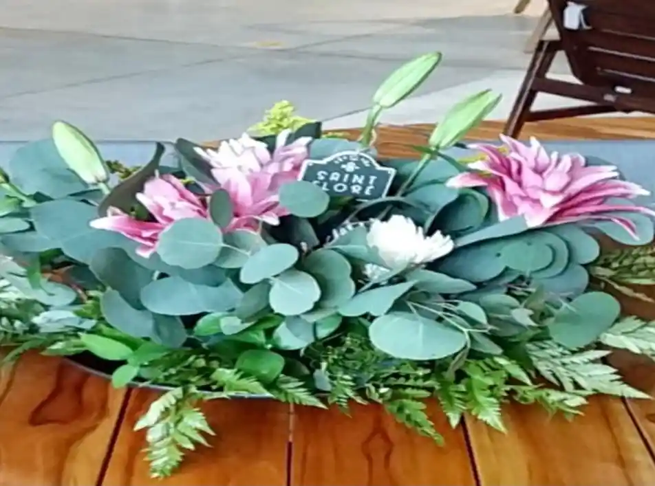 • 10 fullys. • 3 lirios corrugados. • 2 paquete de helecho. • 2 paquetes de eucalipto silver dollar. No incluye Jarrón/canasta. El color de la flor puede variar