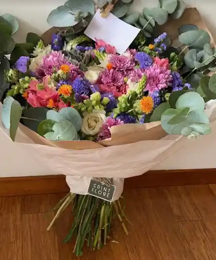 • 12 rosas. • 1 paquete de boca dragón. • 1 paquete de estrella de belén. • 1 paquete de cártamo. • 1 paquete de astromelias. • 1 paquete de eucalipto. • ½ paquete de statice. • ½ paquete de margarita pompón. No incluye Jarrón/canasta. El color de la flor puede variar