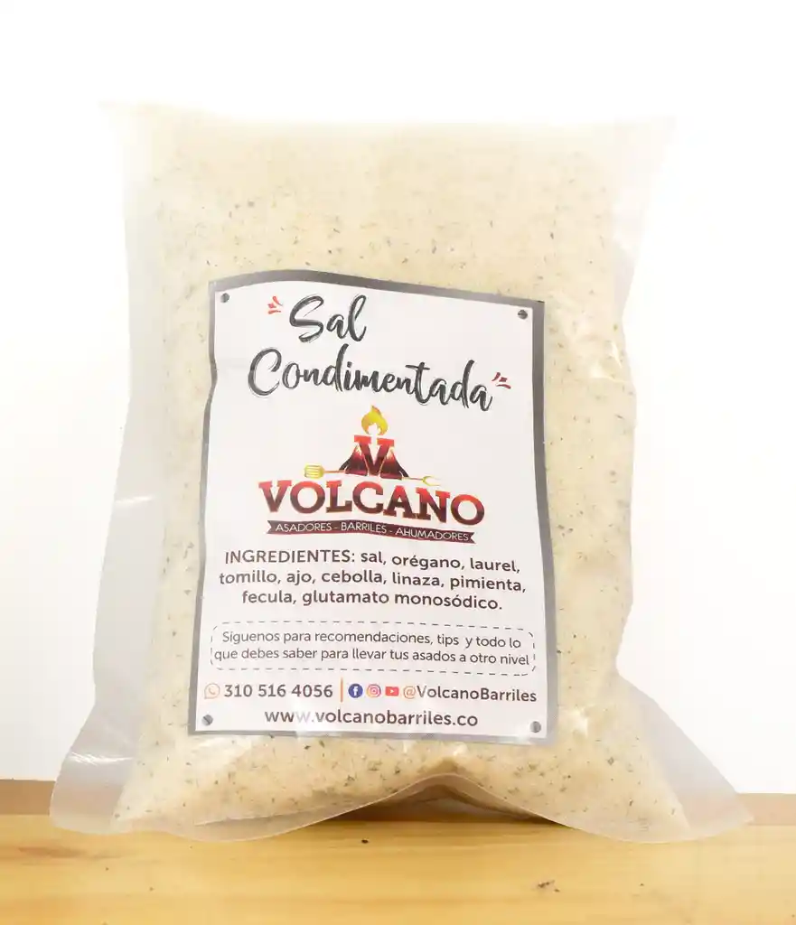Sal Condimentada ideal para Asados incluye: Sal, Oregano, Laurel, Tomillo, Ajo, Cebolla, Linaza, Pimienta, Fecula y Glutamato Monosodico 200 Gramos