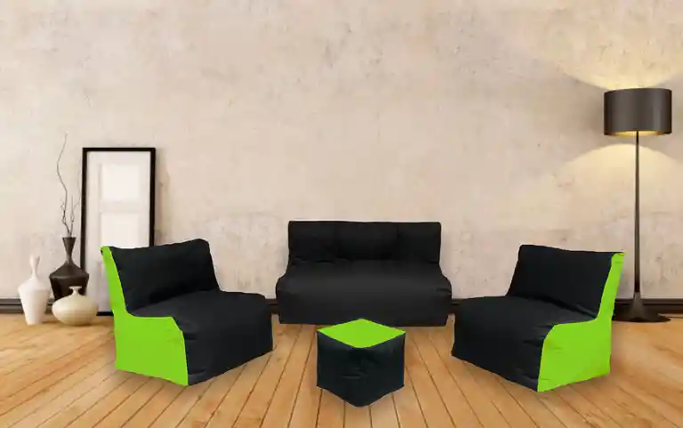 SALA PUFF CLASSIC EN LONA El juego de Sala Puff es adecuado para espacios donde quieres mantener un ambiente tranquilo, descomplicado y relajado. CARACTERÍSTICAS - Funda Exterior en Lona Morral, esta es antifluidos y de gran resistencia. - Relleno en icopor particulado, permitiendo que se aapte a la forma de tu cuerpo. - Doble costura, reforzando las partes de mayor presión. - Cremallera para que le puedas poner más relleno a tu gusto. MEDIDAS - Sofá: 75 x 75 x 135cm. - Sillas Modelo 3 (Deko): 75 x 75 x 75cm. - Obsequio (MesaPuff): 40 x 40 x 40cm. Te la entregamos con garantía de 3 meses con cubrimiento a Nivel Nacional