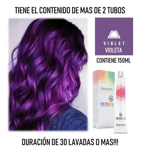 TINTE FANTASIA SALERM VIOLET (VIOLETA) Contiene: 150ml LA TINTURA DE FANTASIA SE APLICA DIRECTAMENTE SIN PEROXIDO Y SOBRE UNA DECOLORACIÓN ETAPA 10; LO QUE INDICA QUE EL CABELLO DEBE ESTAR COMPLETAMENTE DECOLORADO SIN RASTROS AMARILLOS, NARANJAS O CAFES. DURACIÓN ES DE 30 LAVADAS O MUCHO MAS DEPENDIENDO DEL CUIDADO DEL TONO. Coloración semipermanente de alta definición Exprésate mediante el color más intenso con el tinte semipermanente HD Colors. Pigmentos atrevidos y salvajes de máxima definición. HD Colors Fantasía es una coloración que cuida y repara la fibra capilar ya que no contiene amoníaco, ni sustitutos, no tiene pH alcalino y no precisa de oxidantes para su coloración. Además, contiene un polímero acondicionador, derivado de la celulosa, que usa el mismo efecto magnético que los colorantes para adherirse a la fibra y proporcionar un efecto reparador, reduciendo el encrespamiento y facilitando el secado y cepillado. HD Colors utiliza colorantes con efecto magnético que son atraídos hacia la cutícula y el interior del cabello, dando como resultado una fijación perfecta de larga duración. MODO DE EMPLEO Aplica HD Colors Fantasía sobre el cabello seco y peina o masajea repetidamente. Vacía la cantidad en un recipiente de plástico. Aplica sobre el cabello, a 1 cm del cuero cabelludo y trabajando de manera uniforme hasta las puntas. Deja actuar durante un tiempo de exposición recomendado de 30 minutos a temperatura ambiente y de 20-25 minutos bajo lámparas de calor infrarrojo. Si el cabello es muy resistente, recomendamos prolongar el tiempo de exposición. La utilización de calor es opcional. Finalmente, enjuaga o lava con agua fría y seca como de costumbre. Te recomendamos utilizar Bitrat Citric Balance para prolongar la duración del color.