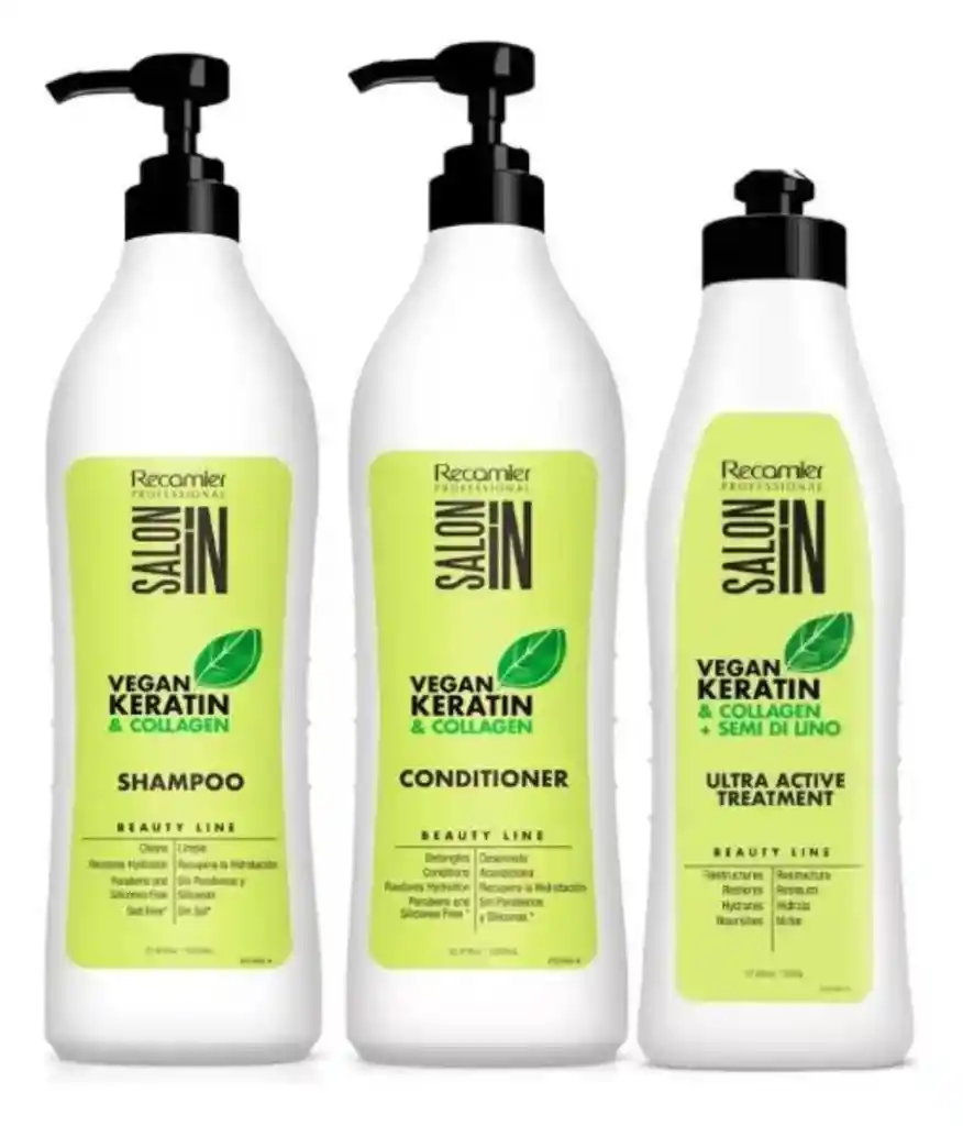 Recamier Kit Vegan Keratin Shampoo Vegan Keratin 1000ml Acondicionador Vegan Keratin 1000ml Tratamiento Vegan Keratin 300ml