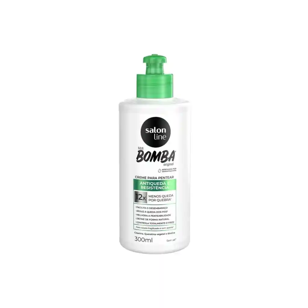 Descripción del Producto Crema de peinar SOS Bomba Anticaída y Resistencia capilar reduce 12 veces la caída del cabello por rotura, facilita el desenredado, mejora la peinabilidad, proporciona una definición natural y controla completamente el encrespamiento. Aprobado por dermatólogos. ¿Cuáles son los principales ingredientes activos? Creatina: restaura la fibra capilar, fortaleciéndola. Queratina vegetal: ayuda a reconstruir y fortalecer el cabello. Biotina: ideal para fortalecer el cabello y combatir la caída. ¿Cuál es la mejor manera de usarlo? Sobre el cabello limpio y húmedo, aplique el Acondicionador Sin Enjuague SOS Bomba Anticaída y Resistencia mechón por mechón, de largo a puntas. No enjuague. Para mejores resultados, use la línea completa.