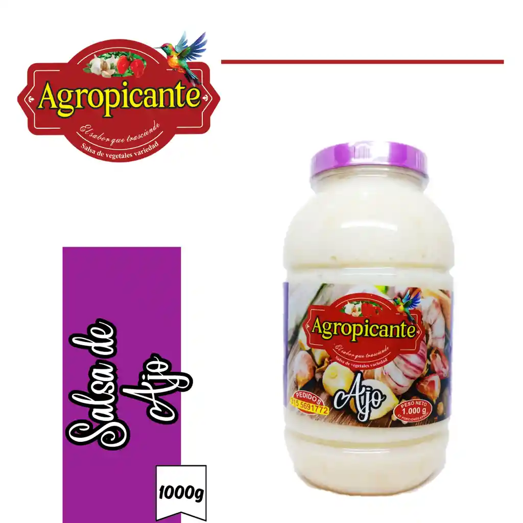 SALSA DE AJO AGROPICANTE X 1000 G, PRODUCTO LISTO PARA SER UTILIZADO EN AVES, MARISCOS, PESCADOS, CARNES, ENSALADAS Y TODA CLASE DE COMIDAS