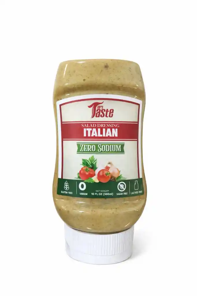 Mrs Taste – Italian Salad Dressing Zero Sodium Disfruta todo el sabor clásico italiano sin preocuparte por el sodio. El Italian Salad Dressing Zero Sodium de Mrs Taste es la opción ideal para quienes buscan una alimentación más saludable sin sacrificar el gusto. Con una mezcla equilibrada de especias y hierbas aromáticas, aporta un toque fresco y delicioso a tus comidas, siendo perfecto para planes fitness, dietas controladas en sodio o estilos de vida saludables. ✨ Beneficios principales: • ✅ 0 sodio • ✅ Sin azúcar añadida • ✅ Libre de gluten • ✅ Sin lactosa • ✅ Ideal para dietas bajas en sodio 📦 Presentación: 10 fl oz (300 ml) Perfecto para ensaladas, bowls, vegetales, proteínas y preparaciones saludables. Más sabor, menos culpa 💪