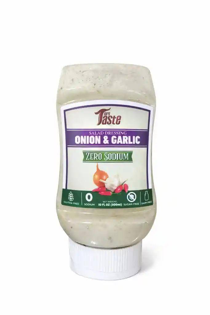 🥗 Mrs Taste – Onion & Garlic Salad Dressing Zero Sodium Sabor intenso y delicioso sin preocuparte por el sodio. El Onion & Garlic Salad Dressing Zero Sodium de Mrs Taste combina el toque aromático de la cebolla con la potencia del ajo, logrando un aderezo cremoso y lleno de carácter, ideal para quienes buscan cuidar su alimentación sin sacrificar sabor. Perfecto para complementar ensaladas, bowls, proteínas, vegetales y preparaciones saludables. ✨ Beneficios principales: • ✅ 0 sodio • ✅ Sin azúcar • ✅ Libre de gluten • ✅ Sin lactosa • ✅ Ideal para planes fitness y dietas controladas 📦 Presentación: 10 fl oz (300 ml) Una opción práctica, versátil y alineada a un estilo de vida saludable. Más sabor, menos restricciones 💪
