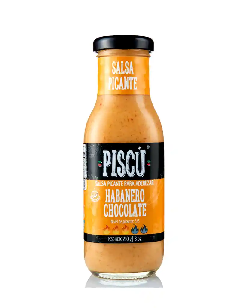 Salsa picante habanero chocolate Piscu 230 g. Crea un balance entre picor, dulzura y notas ahumadas. Perfecta para dar un giro especial a tus platos. RSA-0014569-2021