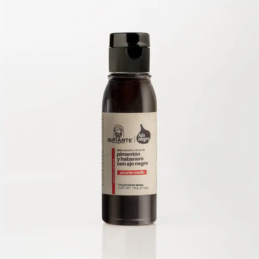 Es una salsa dulce y picante (habanero) hecha de pimentón con el ajo negro. El umami del Ajo Negro junto con la rebeldía de Rufiante. Es un producto gourmet y no una salsa de mesa cualquiera. Úsala para glasear costillas, elevar una hamburguesa aburrida, transformar unos tacos o simplemente viertela sobre queso crema, o cualquier tipo de alimento con el que desee combinar