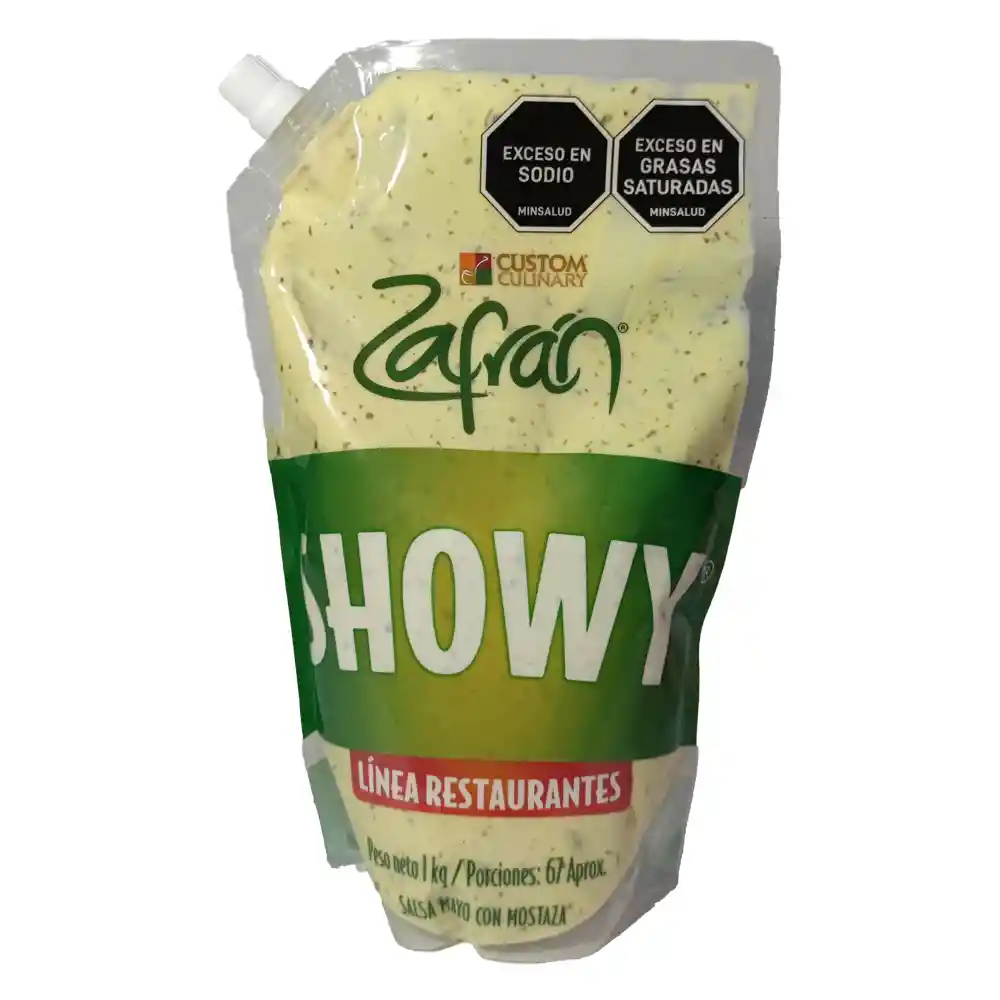 La original, deliciosa y cremosa Salsa Showy Zafrán línea Restaurante con especias, base mayonesa y mostaza que va bien con todo.