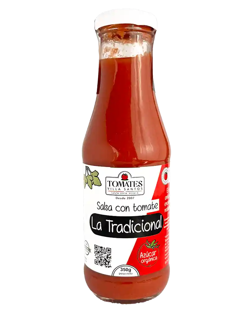 tomate, vinagre, azúcar orgánica, cebolla, pimentón, sal, mostaza, pimienta, canela, clavo y ajo