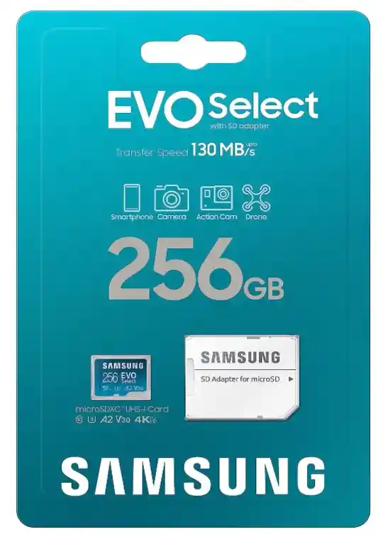 Descubre el aliado perfecto para expandir tu almacenamiento con el SAMSUNG EVO Select + adaptador microSDXC de 256 GB. Este pequeño gigante te ofrece una capacidad masiva para tus archivos, fotos, videos y aplicaciones favoritas. Con velocidades de transferencia rápidas y la confiabilidad de la marca SAMSUNG, el EVO Select es perfecto para cámaras, teléfonos inteligentes, tabletas y otros dispositivos compatibles con microSDXC. ¿Necesitas un almacenamiento adicional para tus aventuras, proyectos creativos o colección multimedia? El SAMSUNG EVO Select cumple ese deseo con su amplia capacidad y rendimiento confiable. No pierdas la oportunidad de tener un almacenamiento potente en la palma de tu mano. Adquiere el SAMSUNG EVO Select + adaptador microSDXC de 256 GB y lleva tus experiencias digitales al siguiente nivel. Haz clic en el enlace de compra y obtén un almacenamiento confiable y versátil para todos tus dispositivos. Características del producto: - Capacidad de 256 GB: Amplia capacidad para almacenar una gran cantidad de fotos, videos, música y documentos. - Velocidades de Transferencia Rápidas: Clase de velocidad UHS-I U3 y velocidad de lectura de hasta 100 MB/s y velocidad de escritura de hasta 90 MB/s para una transferencia rápida de archivos. - Adaptador microSDXC incluido: Permite usar la tarjeta microSDXC en dispositivos compatibles con tarjetas SD. - Resistente y Duradero: Diseñado para soportar condiciones extremas, incluyendo resistencia al agua, a la temperatura, a los golpes y a los rayos X. - Compatibilidad Universal: Compatible con una amplia gama de dispositivos, incluyendo teléfonos inteligentes, tabletas, cámaras, drones, consolas de juegos y más. - Amplia Aplicación: Ideal para almacenar fotos y videos en alta resolución, grabaciones de video 4K UHD, juegos móviles y otras aplicaciones exigentes. Especifícaciones técnicas - Tipo de producto Tarjeta de memoria microSDXC - Línea familia EVO Select - Aplicación Teléfono móvil, smartphone, tablet, etc. - Capacidad 256 GB - Interfaz UHS-I - Dimensiones (ancho x alto x fondo) 15x11x1 mm - Peso Aprox. 0.25 g - Accesorio Adaptador SD - Velocidad Lectura: hasta 130 MB/s de escritura: menor que la velocidad de lectura - Clase de velocidad U3 - Tipo de producto Tarjeta de memoria microSDXC - Interfaz UHS-I, compatible con la interfaz UHS - Clase U3, V30, A2 - SD externa/extraíble Sí - MicroSD Sí - Voltaje de funcionamiento 2.7 ~ 3.6 V - Temperatura de almacenamiento De -40 ℃ a 85 ℃ - Temperatura de funcionamiento -25℃ a 85℃ - Durabilidad 10,000 ciclos de conexión - Contenido Adaptador SD - Certificación CE (UKCA) /FCC/VCCI/RCM - Calificado Clase 10