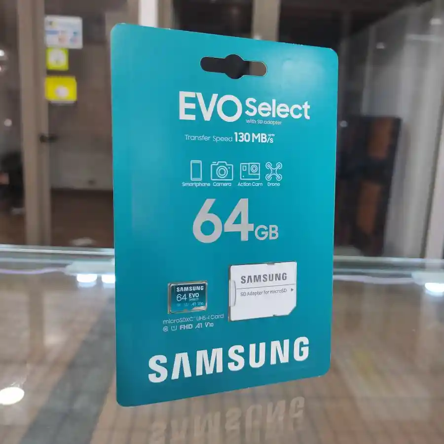 »> Samsung Evo Select 64GB C10 U1 FHD A1 V10 130MB/s + Adaptador (MB-ME64KA-AM) »> Tipo de producto: Tarjeta de memoria microSDXC »> Línea familia: EVO Select+ »> Aplicación: Teléfono móvil, smartphone, Tablet, etc. »> Capacidad: 64GB »> Interfaz: UHS-I »> Dimensiones (ancho x alto x fondo): 15x11x1 milímetro »> Peso: Aprox. 0.25 g »> Incluye adaptador SD »> Velocidad de lectura: hasta 130 MB/s »> Clase V10: Está en las tarjetas de Clase 10 y UHS1, para sacar fotos de alta definición consecutivas y grabar vídeos en FullHD de 1080p o resoluciones inferiores