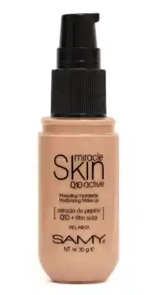 Base de maquillaje líquido enriquecida con extracto de pepino, aloe vera, vitamina E y coenzima Q10, que ayudan a suavizar, hidratar y retrasar el proceso de envejecimiento prematuro en la piel. Cobertura ligera y textura cremosa que se aplica y difumina con facilidad. Apta para pieles mixtas.